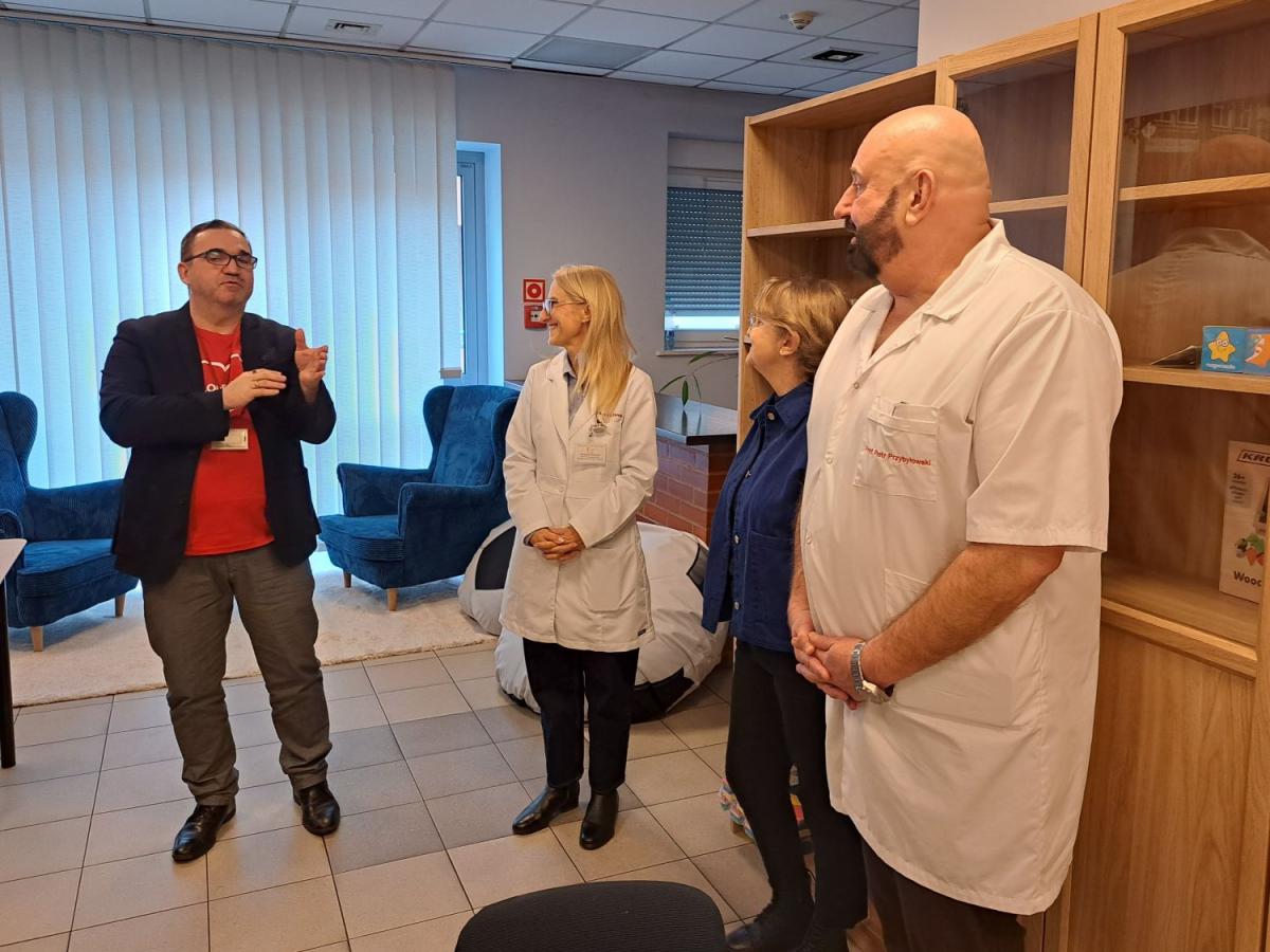 Jest bardzo różnie, są rodzice coraz bardziej świadomi, jeżeli chodzi o pomoc psychologiczną. Czasami już podczas przyjęcia na planowany zabieg, proszą o rozmowę z psychologiem. Chociaż czasami nic się nie dzieje, mają potrzebę rozmowy, wsparcia eksperta w sytuacji wysoce napięciowej, która ich czeka. Czasami taki kontakt my inicjujemy. W oddziale pracują lekarze i pielęgniarki, które są bardzo blisko pacjentów i rodziców. To często dotyczy mam, które są w depresji poporodowej. Bardzo często to pielęgniarki zwracają uwagę na niepokojące symptomy. Natomiast w procesie transplantacyjnym lub podczas zastosowania inwazyjnych procedur medycznych, psycholog uczestniczy cały czas w tym procesie. Nasz szef, doktor Szymon Pawlak bardzo wyraźnie mówi rodzicom o konieczności dbania o swoje zdrowie psychiczne, mówi o trudzie adaptacyjnym, mówi o tym, jak wygląda hospitalizacja. Mówi o konieczności współpracy również w kontekście opieki psychologicznej, bo wie, że jest to konieczne w procesie wracania do zdrowia, szczególnie w przypadku długich hospitalizacji. W naszym zespole rozwinęliśmy bardzo dobrą współpracę wielospecjalistyczną, której podstawą jest wspólne omawianie pacjentów i dzielenie się obserwacjami dotyczącymi nie tylko ich stanu somatycznego ale również ich stanu psychicznego i funkcjonowania w oddziale. Stanowimy bardzo zgraną drużynę. Opieka psychologiczna w oddziałach specjalistycznych jest już standardem. Jako populacja zmagamy się z coraz większymi problemami w obszarze zdrowia psychicznego. Jeżeli do tego dochodzi kryzys zdrowia somatycznego, to jest to dodatkowy czynnik ryzyka dekompensacji psychicznej. Stąd u wszystkich osób przewlekle chorych somatycznie należy monitorować ich stan psychiczny aby po rozpoznaniu zagrożeń od razu wdrażać pomoc psychologiczną lub oddziaływania terapeutyczne.
